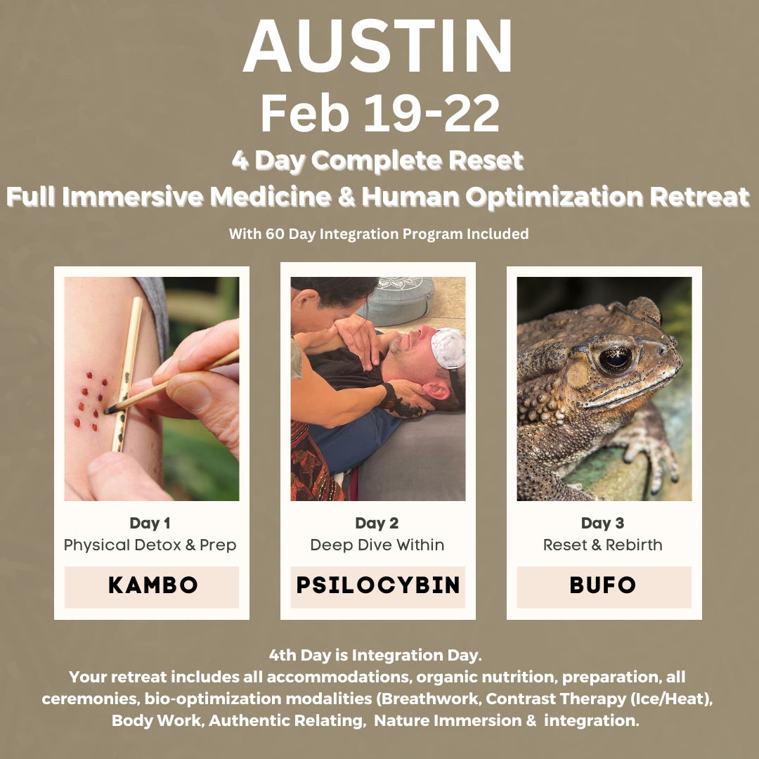 AustinJoin us for a profound inner journey — a guided experience blending macrodosing, breathwork, and integrative practices to reconnect you with your body, calm the mind, and open the heart. What is this Workshop About? This container is designed to: - Support deep introspection - Enhance embodiment - Reduce mental chatter - Facilitate entry into […]